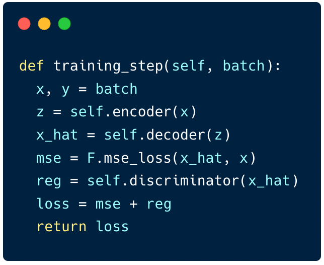 A LightningModule enables your PyTorch nn.Module to play together in complex ways inside the training_step (there is also an optional validation_step and test_step).