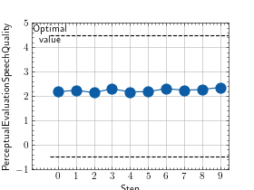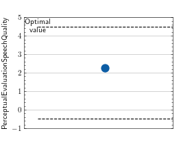 >>> # Example plotting a single value >>> import torch >>> from torchmetrics.audio import PerceptualEvaluationSpeechQuality >>> metric = PerceptualEvaluationSpeechQuality(8000, 'nb') >>> metric.update(torch.rand(8000), torch.rand(8000)) >>> fig_, ax_ = metric.plot()
