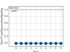 Intelligibility measure which is highly correlated with the intelligibility of degraded speech signals, e.g., due to additive noise, single-/multi-channel noise reduction, binary masking and vocoded speech as in CI simulations. The STOI-measure is intrusive, i.e., a function of the clean and degraded speech signals. STOI may be a good alternative to the speech intelligibility index (SII) or the speech transmission index (STI), when you are interested in the effect of nonlinear processing to noisy speech, e.g., noise reduction, binary masking algorithms, on speech intelligibility. Description taken from Cees Taal’s website and for further defails see STOI ref1 and STOI ref2.