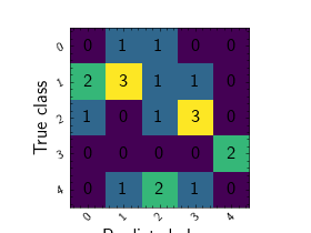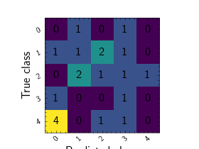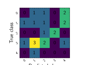 >>> from torch import randint >>> from torchmetrics.classification import MulticlassConfusionMatrix >>> metric = MulticlassConfusionMatrix(num_classes=5) >>> metric.update(randint(5, (20,)), randint(5, (20,))) >>> fig_, ax_ = metric.plot()