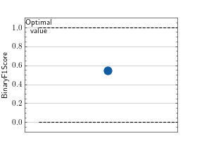 \[F_{1} = 2\frac{\text{precision} * \text{recall}}{(\text{precision}) + \text{recall}}\]The metric is only proper defined when \(\text{TP} + \text{FP} \neq 0 \wedge \text{TP} + \text{FN} \neq 0\) where \(\text{TP}\), \(\text{FP}\) and \(\text{FN}\) represent the number of true positives, false positives and false negatives respectively. If this case is encountered a score of 0 is returned.
