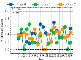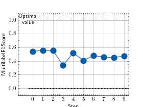 >>> from torch import rand, randint >>> # Example plotting multiple values >>> from torchmetrics.classification import MultilabelF1Score >>> metric = MultilabelF1Score(num_labels=3) >>> values = [ ] >>> for _ in range(10): ... values.append(metric(randint(2, (20, 3)), randint(2, (20, 3)))) >>> fig_, ax_ = metric.plot(values)