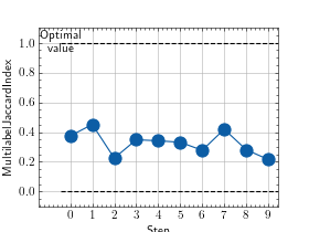 >>> # Example plotting multiple values >>> from torch import rand, randint >>> from torchmetrics.classification import MultilabelJaccardIndex >>> metric = MultilabelJaccardIndex(num_labels=3) >>> values = [ ] >>> for _ in range(10): ... values.append(metric(randint(2, (20, 3)), randint(2, (20, 3)))) >>> fig_, ax_ = metric.plot(values)