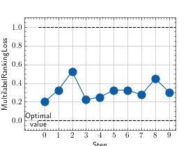 >>> from torch import rand, randint >>> # Example plotting multiple values >>> from torchmetrics.classification import MultilabelRankingLoss >>> metric = MultilabelRankingLoss(num_labels=3) >>> values = [ ] >>> for _ in range(10): ... values.append(metric(rand(20, 3), randint(2, (20, 3)))) >>> fig_, ax_ = metric.plot(values)