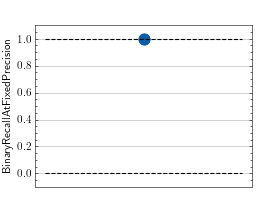 >>> from torch import rand, randint >>> # Example plotting a single value >>> from torchmetrics.classification import BinaryRecallAtFixedPrecision >>> metric = BinaryRecallAtFixedPrecision(min_precision=0.5) >>> metric.update(rand(10), randint(2,(10,))) >>> fig_, ax_ = metric.plot() # the returned plot only shows the maximum recall value by default