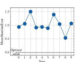 >>> from torch import randn >>> # Example plotting multiple values >>> from torchmetrics.regression import MeanAbsoluteError >>> metric = MeanAbsoluteError() >>> values = [] >>> for _ in range(10): ... values.append(metric(randn(10,), randn(10,))) >>> fig, ax = metric.plot(values)