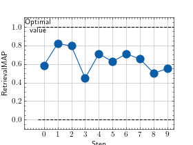 >>> import torch >>> from torchmetrics.retrieval import RetrievalMAP >>> # Example plotting multiple values >>> metric = RetrievalMAP() >>> values = [] >>> for _ in range(10): ... values.append(metric(torch.rand(10,), torch.randint(2, (10,)), indexes=torch.randint(2,(10,)))) >>> fig, ax = metric.plot(values)