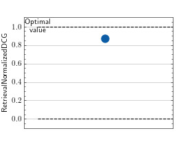 >>> import torch >>> from torchmetrics.retrieval import RetrievalNormalizedDCG >>> # Example plotting a single value >>> metric = RetrievalNormalizedDCG() >>> metric.update(torch.rand(10,), torch.randint(2, (10,)), indexes=torch.randint(2,(10,))) >>> fig_, ax_ = metric.plot()