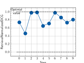 >>> import torch >>> from torchmetrics.retrieval import RetrievalNormalizedDCG >>> # Example plotting multiple values >>> metric = RetrievalNormalizedDCG() >>> values = [] >>> for _ in range(10): ... values.append(metric(torch.rand(10,), torch.randint(2, (10,)), indexes=torch.randint(2,(10,)))) >>> fig, ax = metric.plot(values)