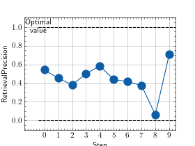 >>> import torch >>> from torchmetrics.retrieval import RetrievalPrecision >>> # Example plotting multiple values >>> metric = RetrievalPrecision() >>> values = [] >>> for _ in range(10): ... values.append(metric(torch.rand(10,), torch.randint(2, (10,)), indexes=torch.randint(2,(10,)))) >>> fig, ax = metric.plot(values)
