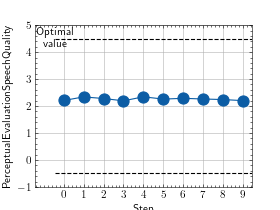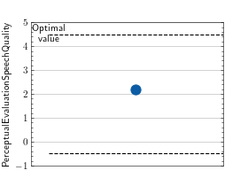 >>> # Example plotting a single value >>> import torch >>> from torchmetrics.audio import PerceptualEvaluationSpeechQuality >>> metric = PerceptualEvaluationSpeechQuality(8000, 'nb') >>> metric.update(torch.rand(8000), torch.rand(8000)) >>> fig_, ax_ = metric.plot()