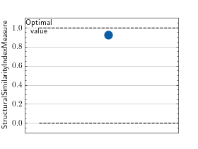 >>> # Example plotting a single value >>> import torch >>> from torchmetrics.image import StructuralSimilarityIndexMeasure >>> preds = torch.rand([3, 3, 256, 256]) >>> target = preds * 0.75 >>> metric = StructuralSimilarityIndexMeasure(data_range=1.0) >>> metric.update(preds, target) >>> fig_, ax_ = metric.plot()