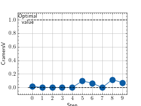 >>> # Example plotting multiple values >>> import torch >>> from torchmetrics.nominal import CramersV >>> metric = CramersV(num_classes=5) >>> values = [ ] >>> for _ in range(10): ... values.append(metric(torch.randint(0, 4, (100,)), torch.randint(0, 4, (100,)))) >>> fig_, ax_ = metric.plot(values)