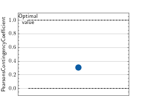 predsandtarget, respectively.Pearson’s Contingency Coefficient is a symmetric coefficient, i.e. \(Pearson(preds, target) = Pearson(target, preds)\).