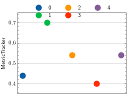 >>> # Example plotting a single value >>> import torch >>> from torchmetrics.wrappers import MetricTracker >>> from torchmetrics.classification import BinaryAccuracy >>> tracker = MetricTracker(BinaryAccuracy()) >>> for epoch in range(5): ... tracker.increment() ... for batch_idx in range(5): ... tracker.update(torch.randint(2, (10,)), torch.randint(2, (10,))) >>> fig_, ax_ = tracker.plot() # plot all epochs