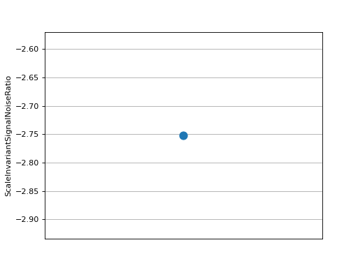 >>> # Example plotting a single value >>> import torch >>> from torchmetrics.audio import ScaleInvariantSignalNoiseRatio >>> metric = ScaleInvariantSignalNoiseRatio() >>> metric.update(torch.rand(4), torch.rand(4)) >>> fig_, ax_ = metric.plot()