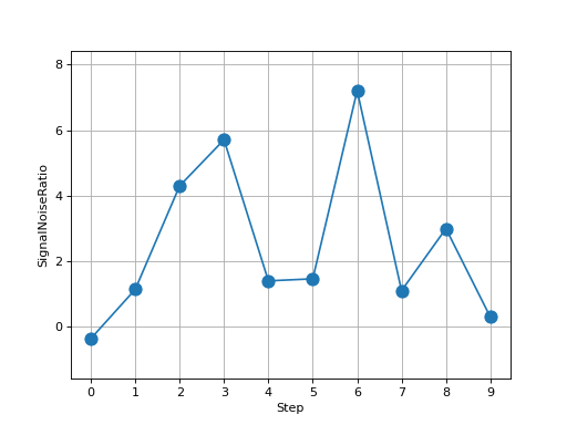 >>> # Example plotting multiple values >>> import torch >>> from torchmetrics.audio import SignalNoiseRatio >>> metric = SignalNoiseRatio() >>> values = [ ] >>> for _ in range(10): ... values.append(metric(torch.rand(4), torch.rand(4))) >>> fig_, ax_ = metric.plot(values)