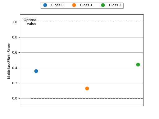 >>> from torch import tensor >>> from torchmetrics.classification import MulticlassFBetaScore >>> target = tensor([2, 1, 0, 0]) >>> preds = tensor([2, 1, 0, 1]) >>> metric = MulticlassFBetaScore(beta=2.0, num_classes=3) >>> metric(preds, target) tensor(0.7963) >>> mcfbs = MulticlassFBetaScore(beta=2.0, num_classes=3, average=None) >>> mcfbs(preds, target) tensor([0.5556, 0.8333, 1.0000])