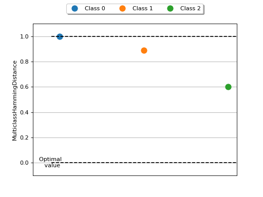 >>> # Example plotting a single value per class >>> from torch import randint >>> from torchmetrics.classification import MulticlassHammingDistance >>> metric = MulticlassHammingDistance(num_classes=3, average=None) >>> metric.update(randint(3, (20,)), randint(3, (20,))) >>> fig_, ax_ = metric.plot()