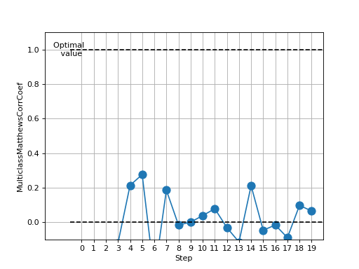 taskargument to either'binary','multiclass'ormultilabel. See the documentation ofBinaryMatthewsCorrCoef,MulticlassMatthewsCorrCoefandMultilabelMatthewsCorrCoeffor the specific details of each argument influence and examples.- Legacy Example: