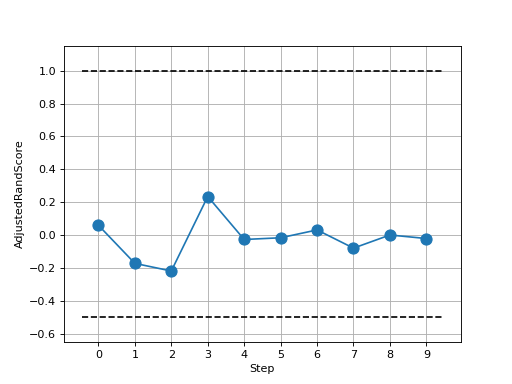 >>> # Example plotting multiple values >>> import torch >>> from torchmetrics.clustering import AdjustedRandScore >>> metric = AdjustedRandScore() >>> values = [ ] >>> for _ in range(10): ... values.append(metric(torch.randint(0, 4, (10,)), torch.randint(0, 4, (10,)))) >>> fig_, ax_ = metric.plot(values)