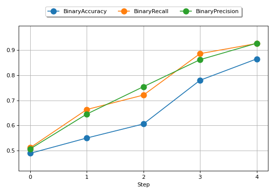 Do note that metrics that do not return simple scalar tensors, such as ConfusionMatrix, ROC that have specialized visualization does not support plotting multiple steps, out of the box and the user needs to manually plot the values for each step.