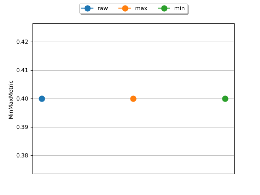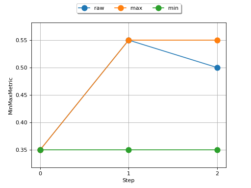 >>> # Example plotting multiple values >>> import torch >>> from torchmetrics.wrappers import MinMaxMetric >>> from torchmetrics.classification import BinaryAccuracy >>> metric = MinMaxMetric(BinaryAccuracy()) >>> values = [ ] >>> for _ in range(3): ... values.append(metric(torch.randint(2, (20,)), torch.randint(2, (20,)))) >>> fig_, ax_ = metric.plot(values)