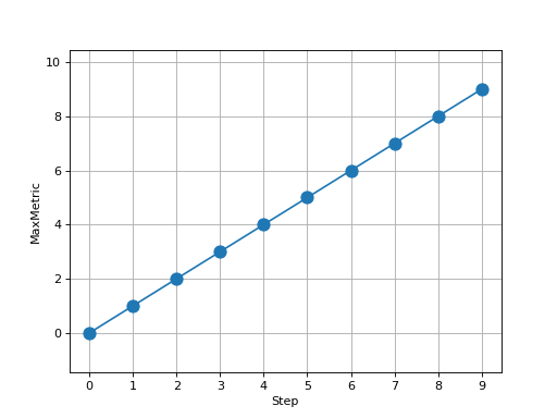 >>> # Example plotting multiple values >>> from torchmetrics.aggregation import MaxMetric >>> metric = MaxMetric() >>> values = [ ] >>> for i in range(10): ... values.append(metric(i)) >>> fig_, ax_ = metric.plot(values)