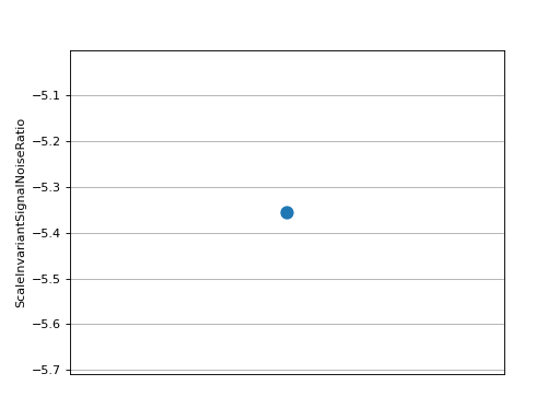 >>> # Example plotting a single value >>> import torch >>> from torchmetrics.audio import ScaleInvariantSignalNoiseRatio >>> metric = ScaleInvariantSignalNoiseRatio() >>> metric.update(torch.rand(4), torch.rand(4)) >>> fig_, ax_ = metric.plot()