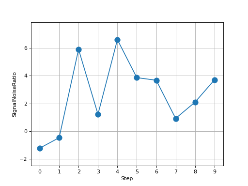>>> # Example plotting multiple values >>> import torch >>> from torchmetrics.audio import SignalNoiseRatio >>> metric = SignalNoiseRatio() >>> values = [ ] >>> for _ in range(10): ... values.append(metric(torch.rand(4), torch.rand(4))) >>> fig_, ax_ = metric.plot(values)