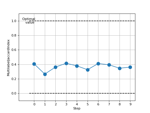 >>> # Example plotting multiple values >>> from torch import rand, randint >>> from torchmetrics.classification import MultilabelJaccardIndex >>> metric = MultilabelJaccardIndex(num_labels=3) >>> values = [ ] >>> for _ in range(10): ... values.append(metric(randint(2, (20, 3)), randint(2, (20, 3)))) >>> fig_, ax_ = metric.plot(values)