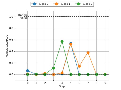 >>> # Example plotting multiple values >>> import torch >>> from torchmetrics.classification import MulticlassLogAUC >>> metric = MulticlassLogAUC(num_classes=3) >>> values = [ ] >>> for _ in range(10): ... values.append(metric(torch.randn(20, 3), torch.randint(3, (20,)))) >>> fig_, ax_ = metric.plot(values)