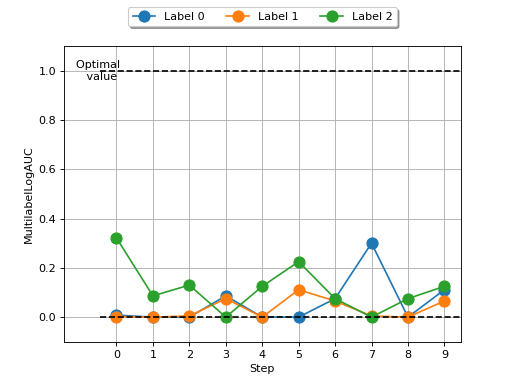 >>> # Example plotting multiple values >>> import torch >>> from torchmetrics.classification import MultilabelLogAUC >>> metric = MultilabelLogAUC(num_labels=3) >>> values = [ ] >>> for _ in range(10): ... values.append(metric(torch.rand(20,3), torch.randint(2, (20,3)))) >>> fig_, ax_ = metric.plot(values)