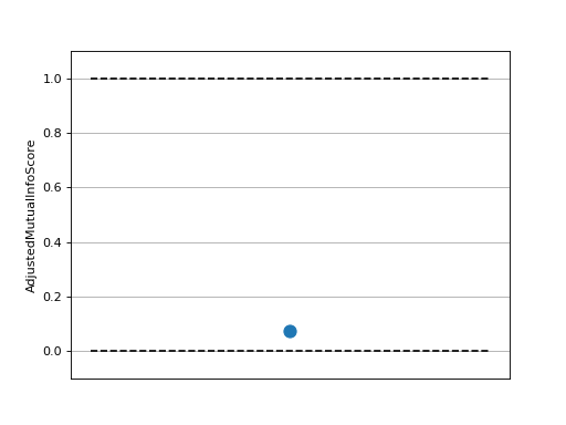 >>> # Example plotting a single value >>> import torch >>> from torchmetrics.clustering import AdjustedMutualInfoScore >>> metric = AdjustedMutualInfoScore() >>> metric.update(torch.randint(0, 4, (10,)), torch.randint(0, 4, (10,))) >>> fig_, ax_ = metric.plot(metric.compute())
