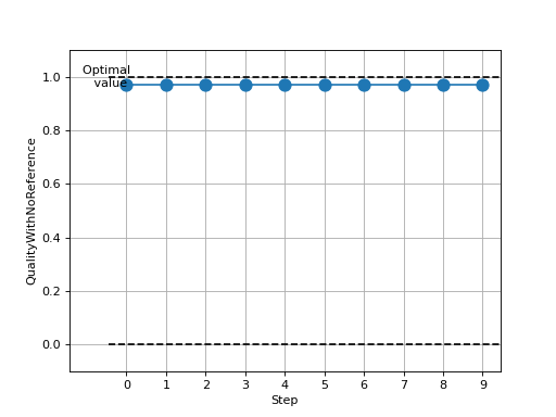 >>> # Example plotting multiple values >>> from torch import rand >>> from torchmetrics.image import QualityWithNoReference >>> preds = rand([16, 3, 32, 32]) >>> target = { ... 'ms': rand([16, 3, 16, 16]), ... 'pan': rand([16, 3, 32, 32]), ... } >>> metric = QualityWithNoReference() >>> values = [ ] >>> for _ in range(10): ... values.append(metric(preds, target)) >>> fig_, ax_ = metric.plot(values)