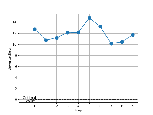 >>> # Example plotting multiple values >>> import torch >>> from torchmetrics.multimodal.lve import LipVertexError >>> metric = LipVertexError(mouth_map=[0, 1, 2, 3, 4]) >>> values = [] >>> for _ in range(10): ... vertices_pred = torch.randn(10, 100, 3, generator=torch.manual_seed(42+_)) ... vertices_gt = torch.randn(10, 100, 3, generator=torch.manual_seed(43+_)) ... values.append(metric(vertices_pred, vertices_gt)) >>> fig_, ax_ = metric.plot(values)