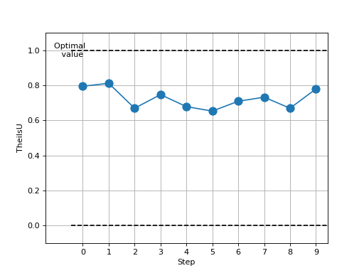 >>> # Example plotting multiple values >>> import torch >>> from torchmetrics.nominal import TheilsU >>> metric = TheilsU(num_classes=10) >>> values = [ ] >>> for _ in range(10): ... values.append(metric(torch.randint(10, (10,)), torch.randint(10, (10,)))) >>> fig_, ax_ = metric.plot(values)