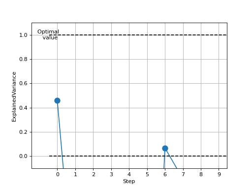 >>> from torch import randn >>> # Example plotting multiple values >>> from torchmetrics.regression import ExplainedVariance >>> metric = ExplainedVariance() >>> values = [] >>> for _ in range(10): ... values.append(metric(randn(10,), randn(10,))) >>> fig, ax = metric.plot(values)