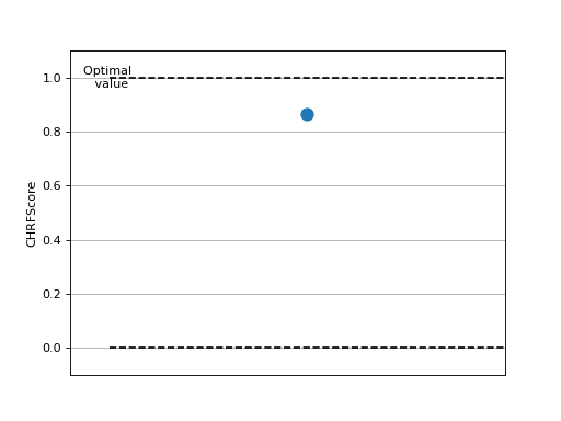 >>> # Example plotting a single value >>> from torchmetrics.text import CHRFScore >>> metric = CHRFScore() >>> preds = ['the cat is on the mat'] >>> target = [['there is a cat on the mat', 'a cat is on the mat']] >>> metric.update(preds, target) >>> fig_, ax_ = metric.plot()