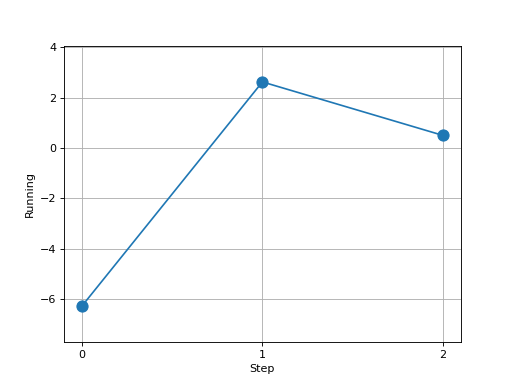 >>> # Example plotting multiple values >>> import torch >>> from torchmetrics.wrappers import Running >>> from torchmetrics.aggregation import SumMetric >>> metric = Running(SumMetric(), 2) >>> values = [ ] >>> for _ in range(3): ... values.append(metric(torch.randn(20, 2))) >>> fig_, ax_ = metric.plot(values)